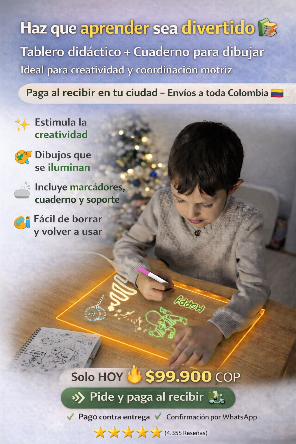 “Llegó rápido. El cuadernito ayuda para que tengan ideas y el soporte queda firme.”